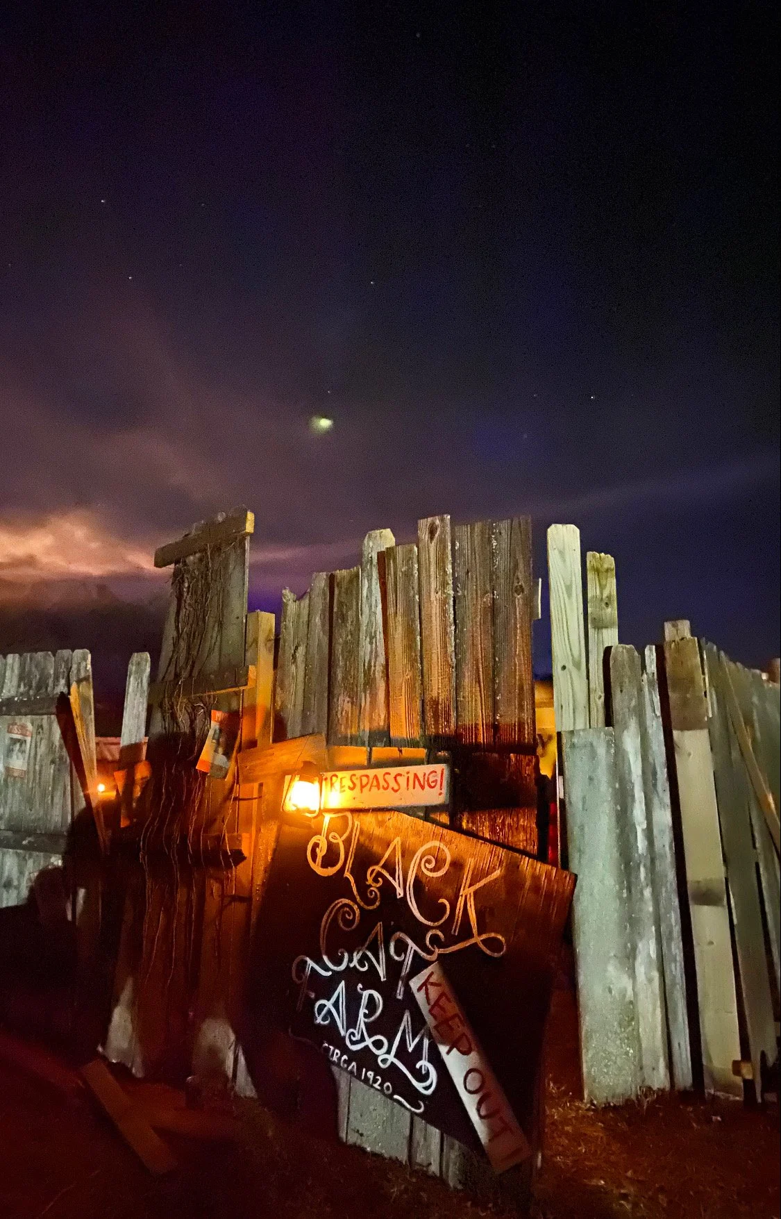 The entrance to our haunted farm, where the lanterns and eerie atmosphere welcomed visitors.