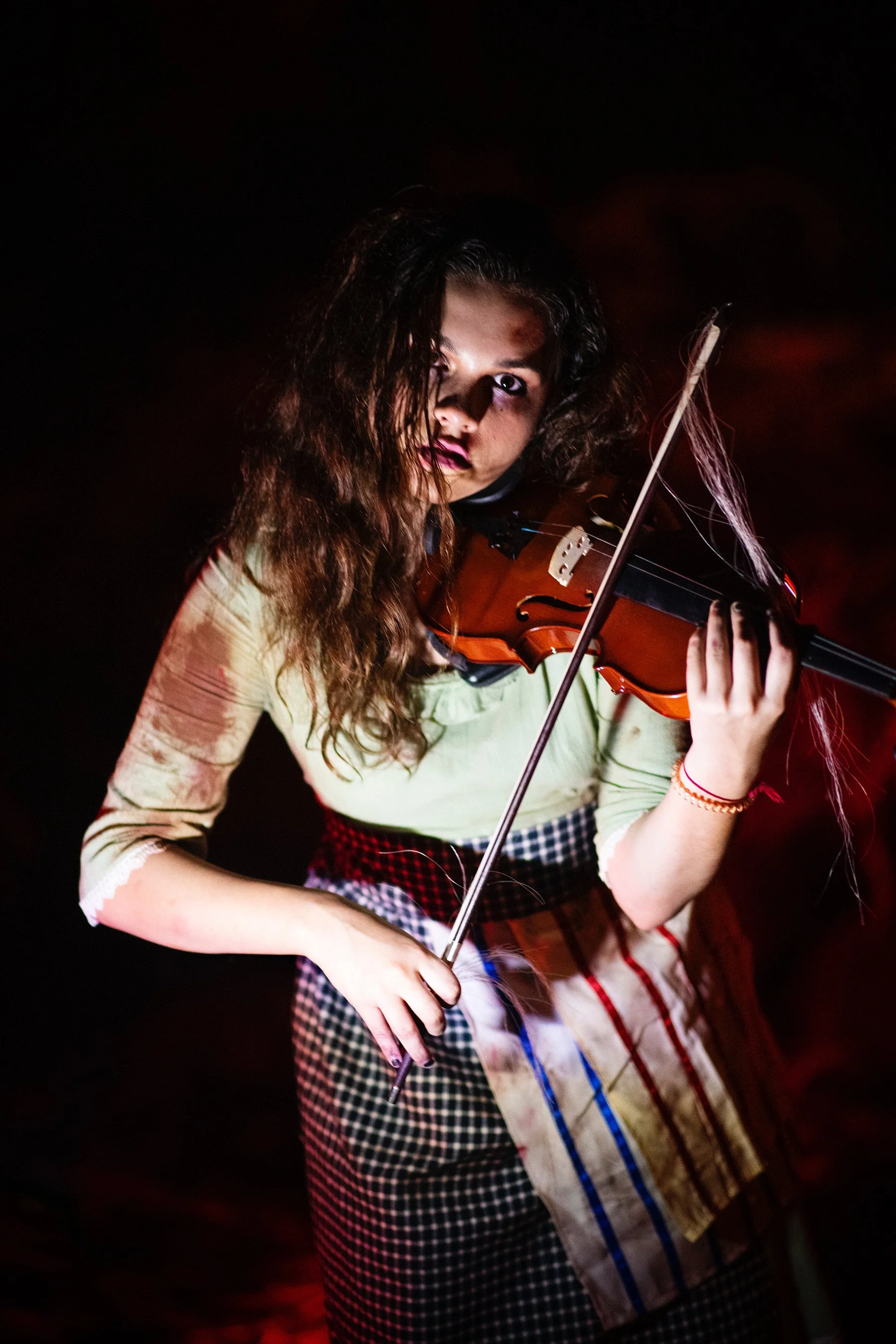 One of our students uses her violin to create a creepy character.