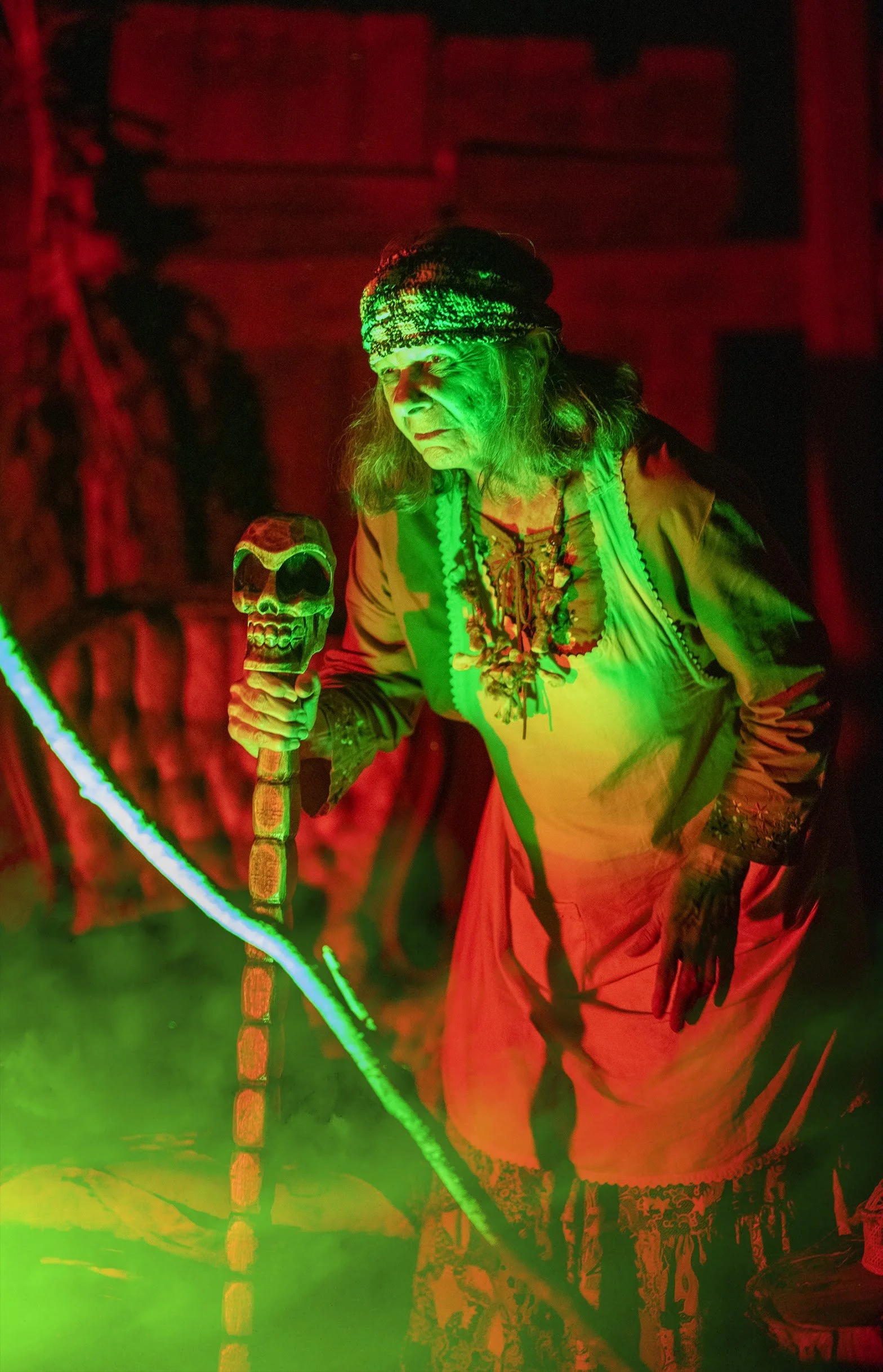These lanterns, reused from past productions, added a perfect eerie glow to the haunted trail and were key to creating the right atmosphere.